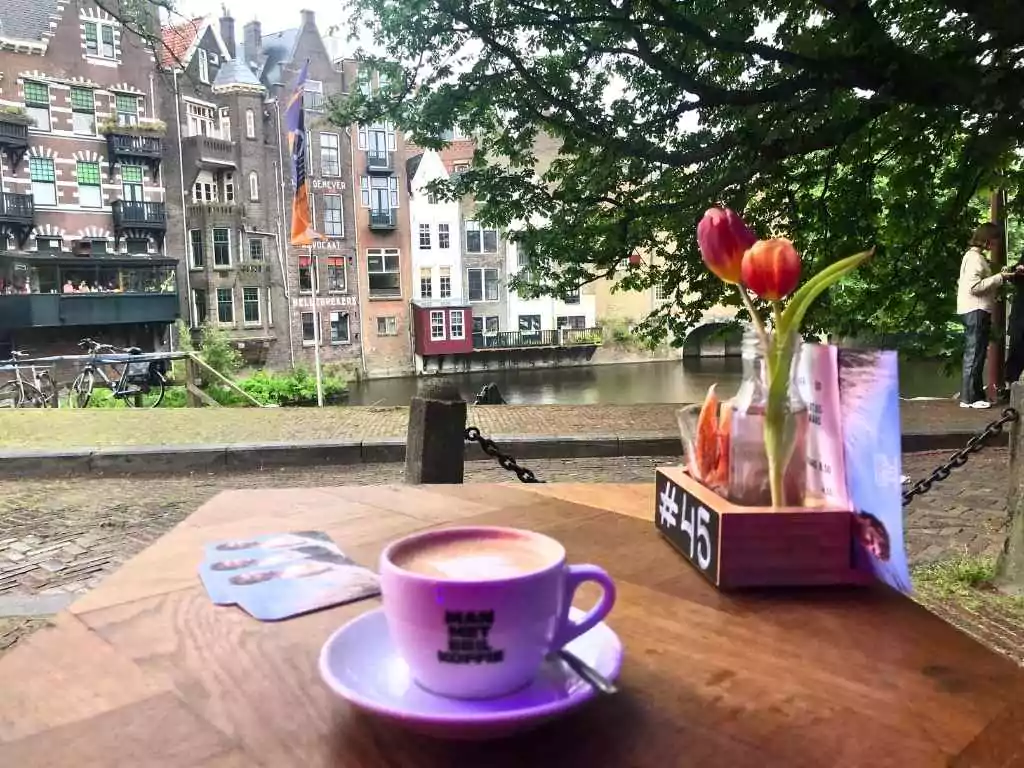 El café en Altstadt proviene de Man Met Bril Koffie, una marca local conocida por su calidad y presente en muchas cafeterías de Róterdam. Man Met Bril Koffie también tiene su propia spot cerca de la estación central. Si vas a Delfshaven, te recomiendo hacer una parada en Altstadt para un café, aunque hay muchas otras opciones a lo largo del canal, muchas de ellas más enfocadas en la comida que en las bebidas.
