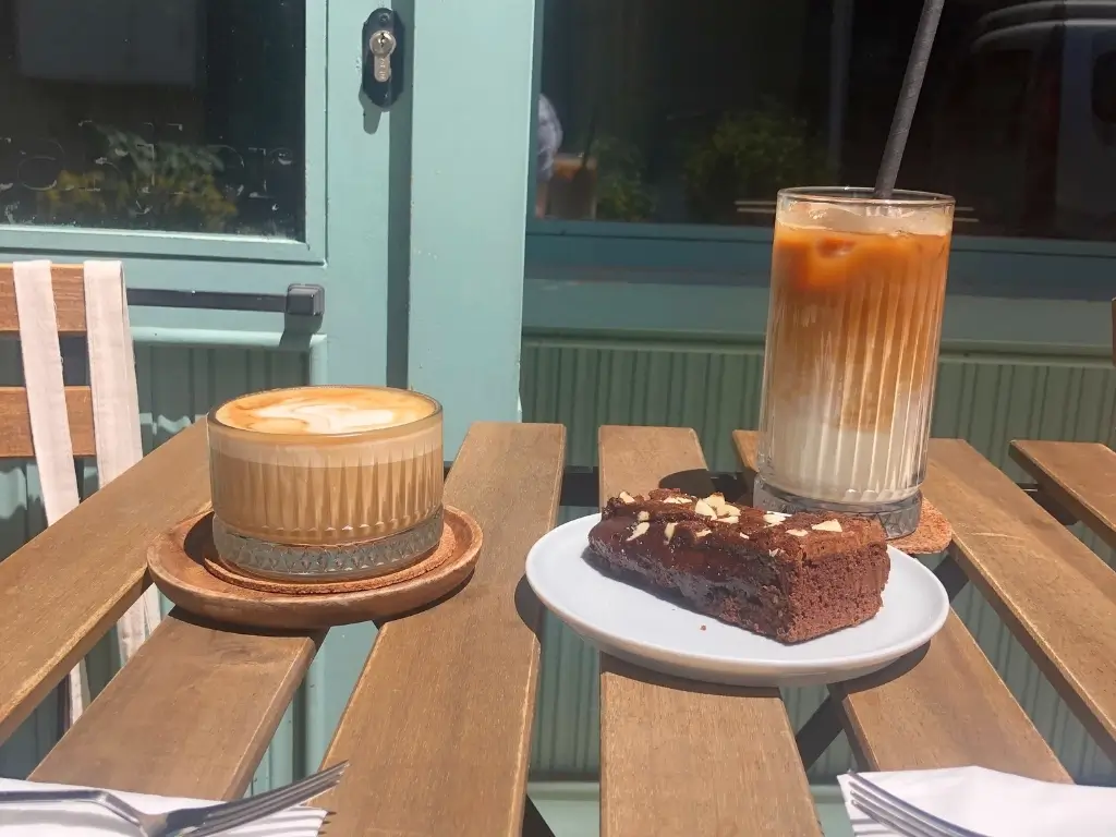 Disfruta un latte de avena en Glow Coffee: Aquí el latte con leche de avena tiene un sabor suave que me encanta. También adoro el brownie, aunque trato de no comerlo cada vez que voy. La decoración es moderna y elegante. Al estar fuera de la calle principal, es menos concurrido que otros cafés.